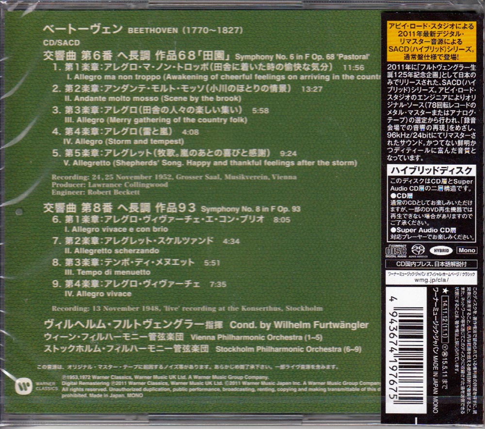 WILHELM FURTWANGLER - BEETHOVEN SYMPHONY NO.6 'PASTORAL' & 8.iso