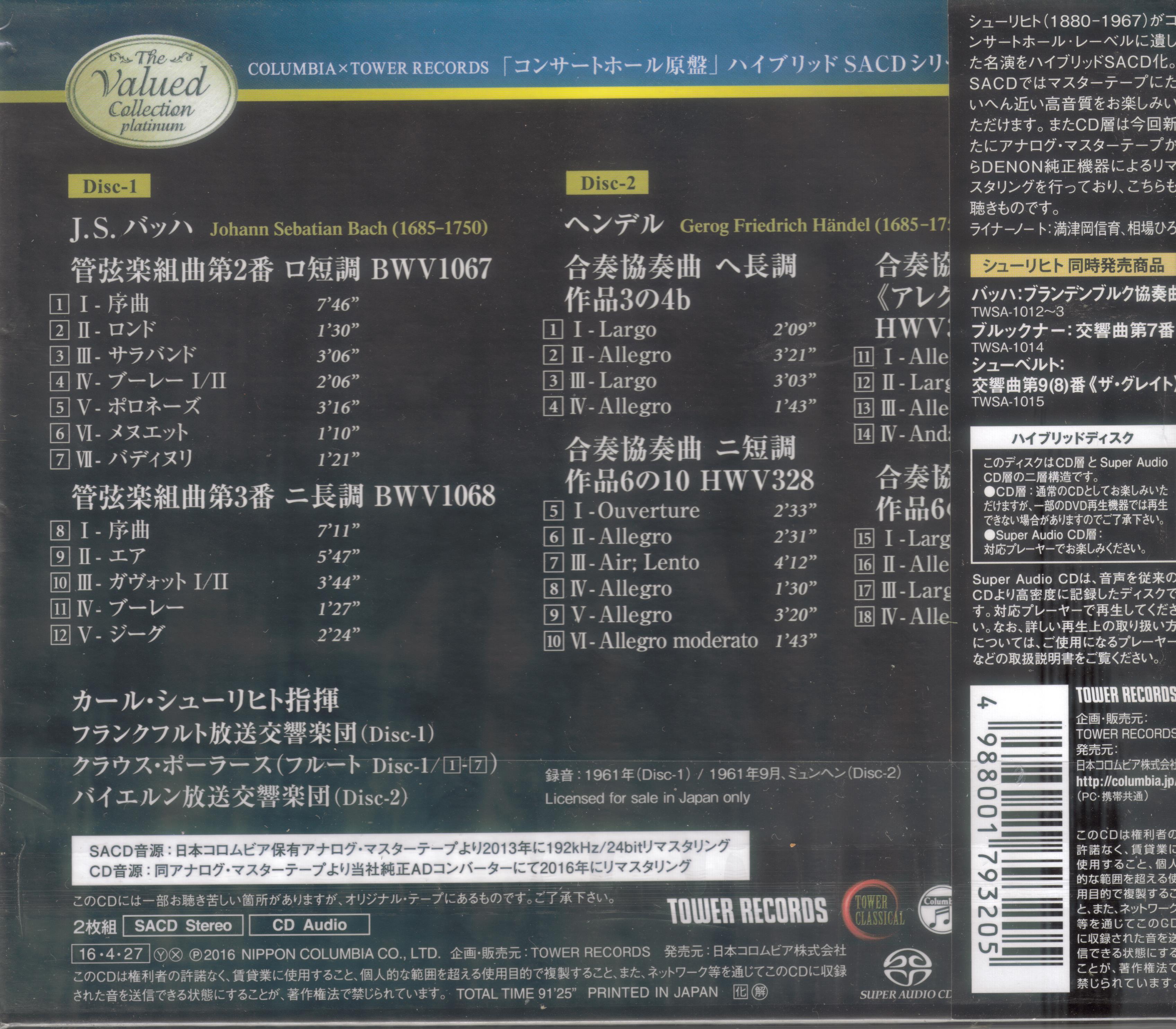 Carl Schuricht - J.S.Bach Orchestral Suites, Handel Concerti Grossi (1961) [2016 SACD The Valued Collection Platinum] 1.iso