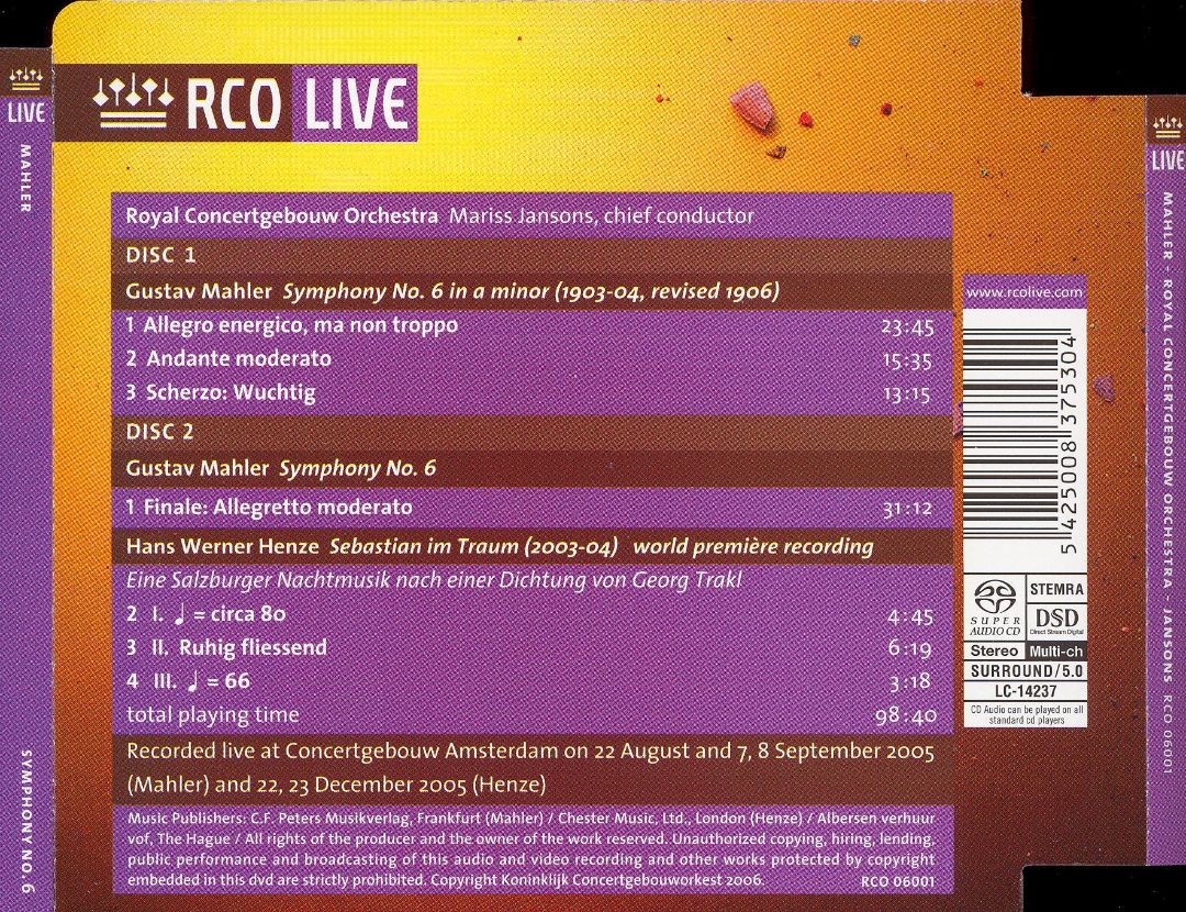 Index of /mnt/media_rw/8448F2C348F2B352/SACD(ISO)/Mahler - Symphony No. 6, Henze - Sebastian im Traum - RCO, Mariss Jansons - 2006