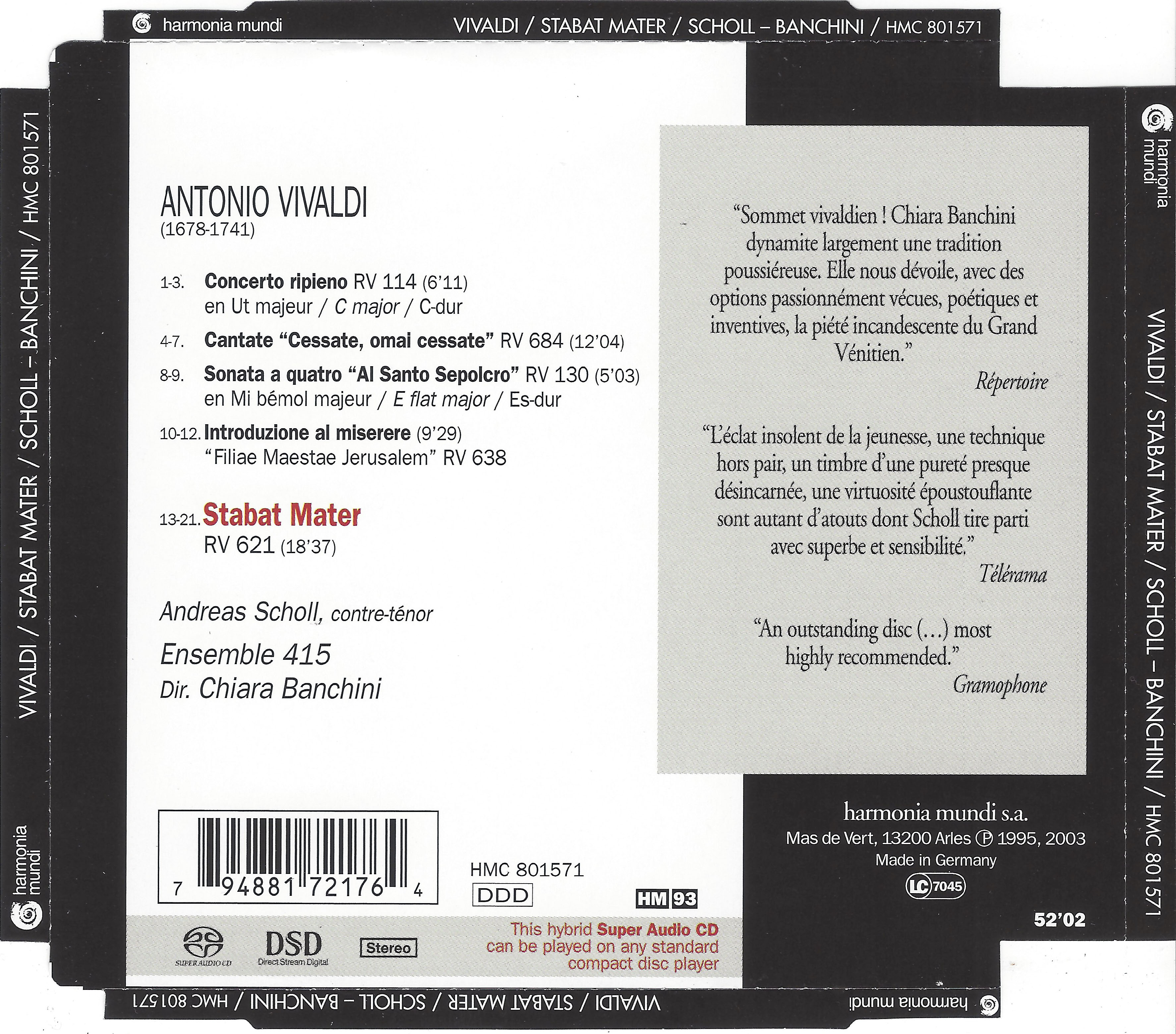ANDREAS SCHOLL ENSEMBLE 415 dir. CHIARA BANCHINI - ANTONIO VIVALDI Stabat Mater.iso