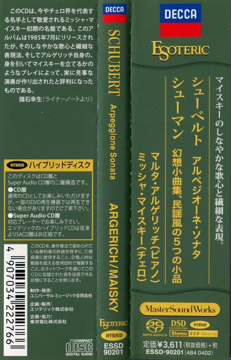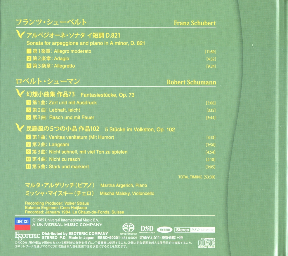Index of /storage/8448F2C348F2B352/SACD(ISO)/[ESOTERIC ESSD-90201] Martha Argerich, Mischa Maisky - Franz Schubert Arpeggione Sonata (SACD ISO)/Artwork