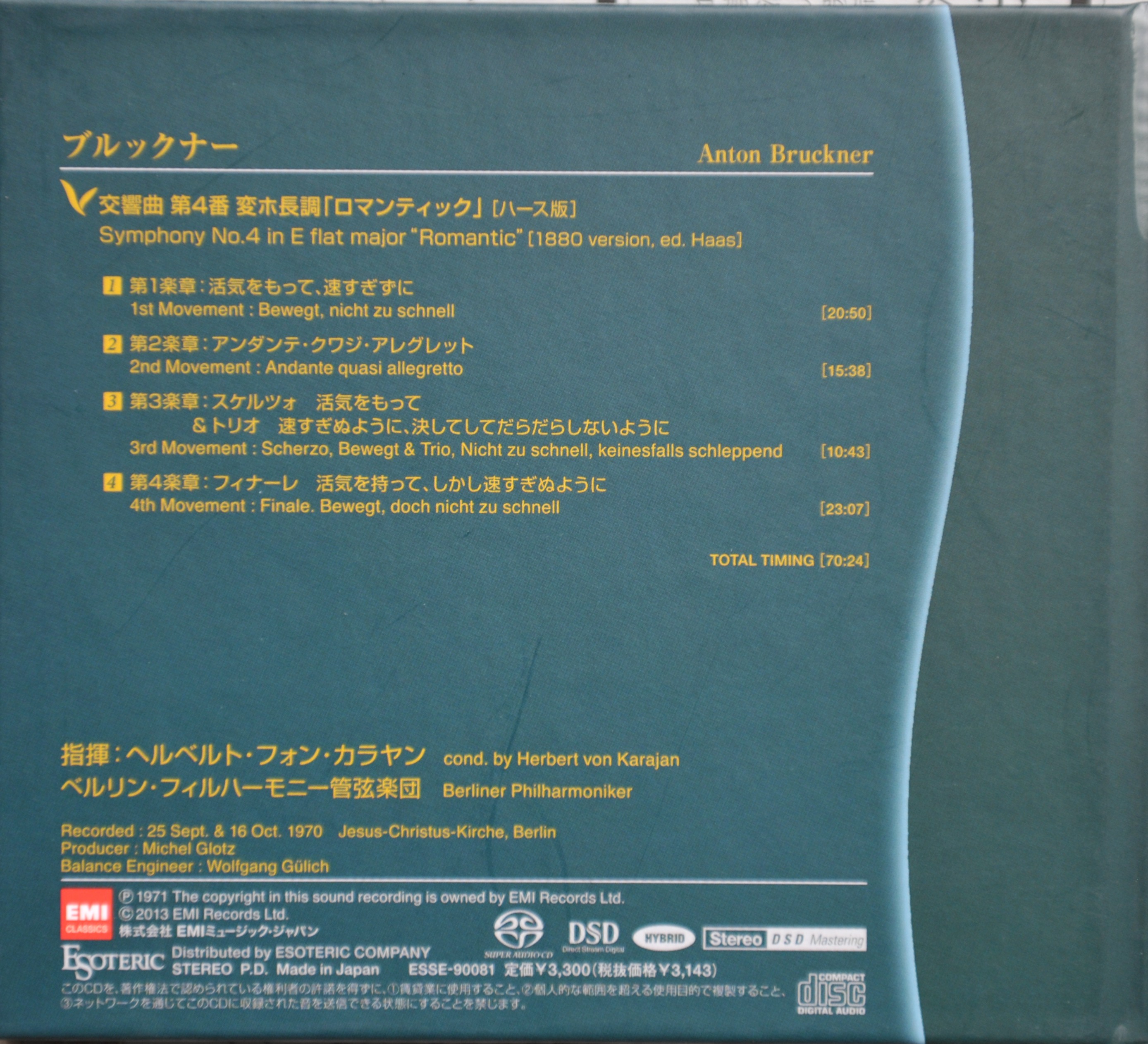 Index of /storage/8448F2C348F2B352/SACD(ISO)/Bruckner - Symphony No.4 ''Romantic'' (BPO, Herbert Von Karajan) (1971, 2013 EMI, Esoteric ESSE-90081)/Artwork
