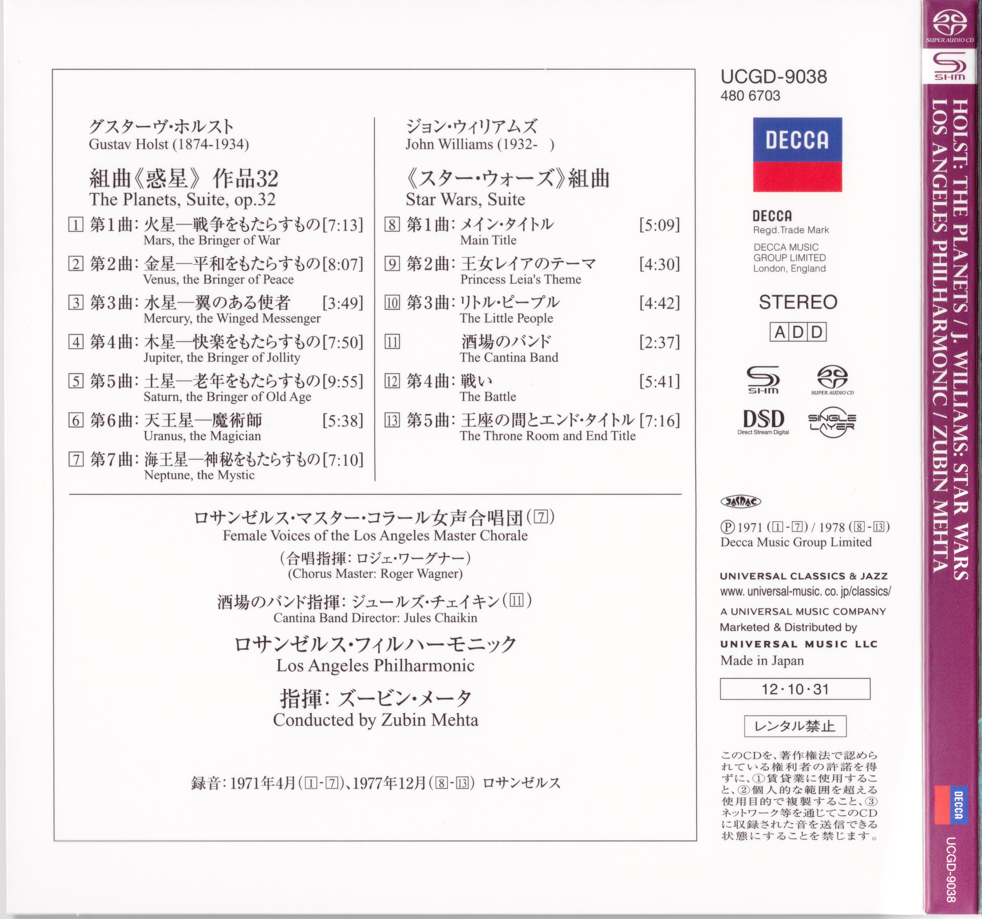 Index of /storage/8448F2C348F2B352/SACD(ISO)/Holst - The Planets - John Williams - Star Wars Suite - Zubin Mehta - LAPO -Decca-SHM-SACD/scans