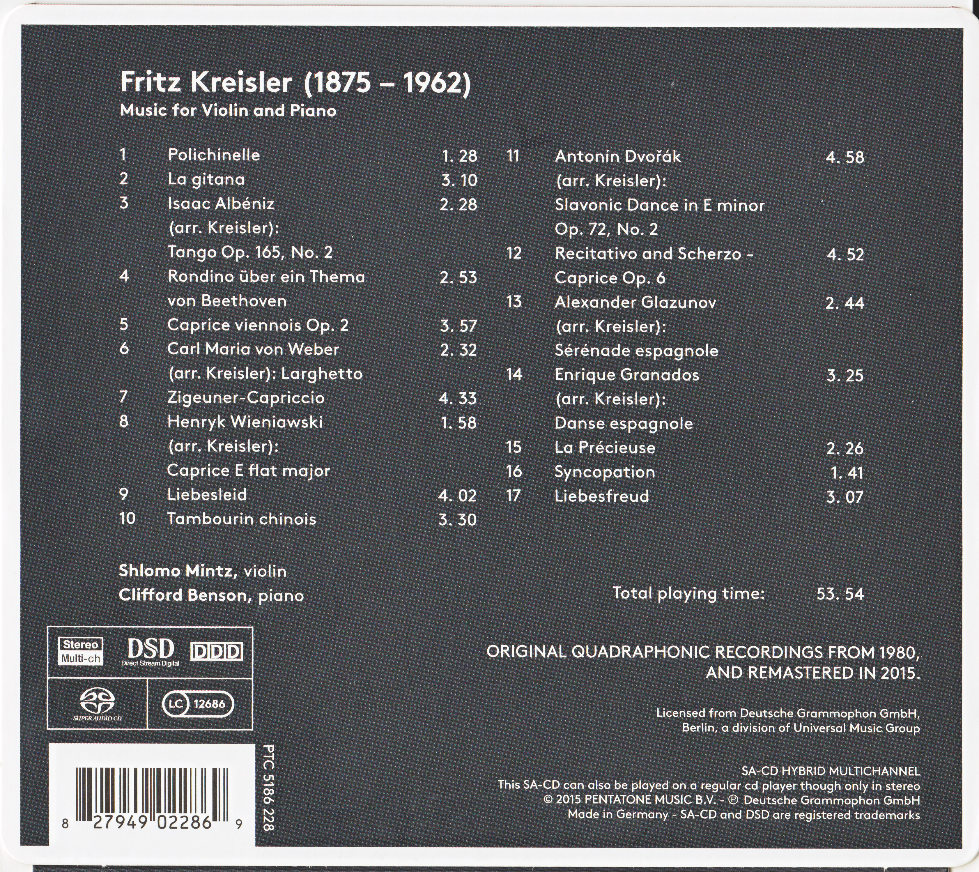Index of /storage/8448F2C348F2B352/SACD(ISO)/Kreisler - Music for Violin and Piano - Shlomo Mintz - Clifford Benson (1980) [2015 Pentatone Remastered]