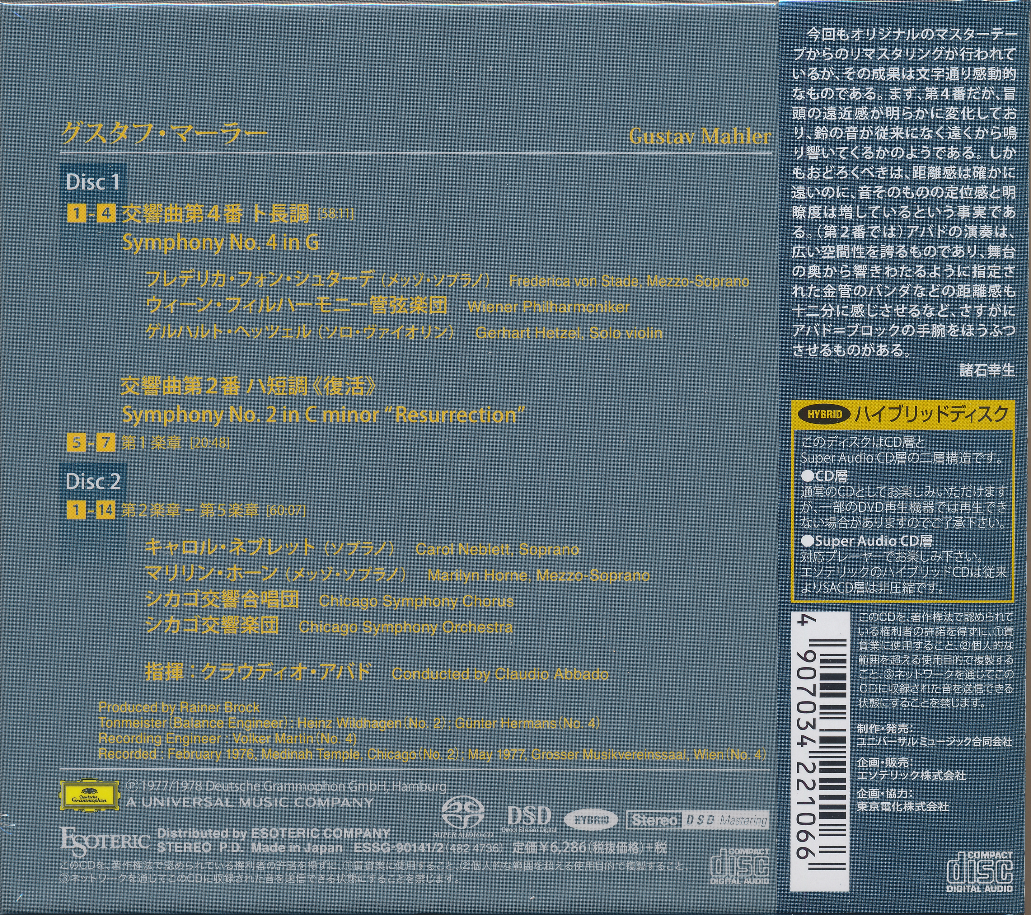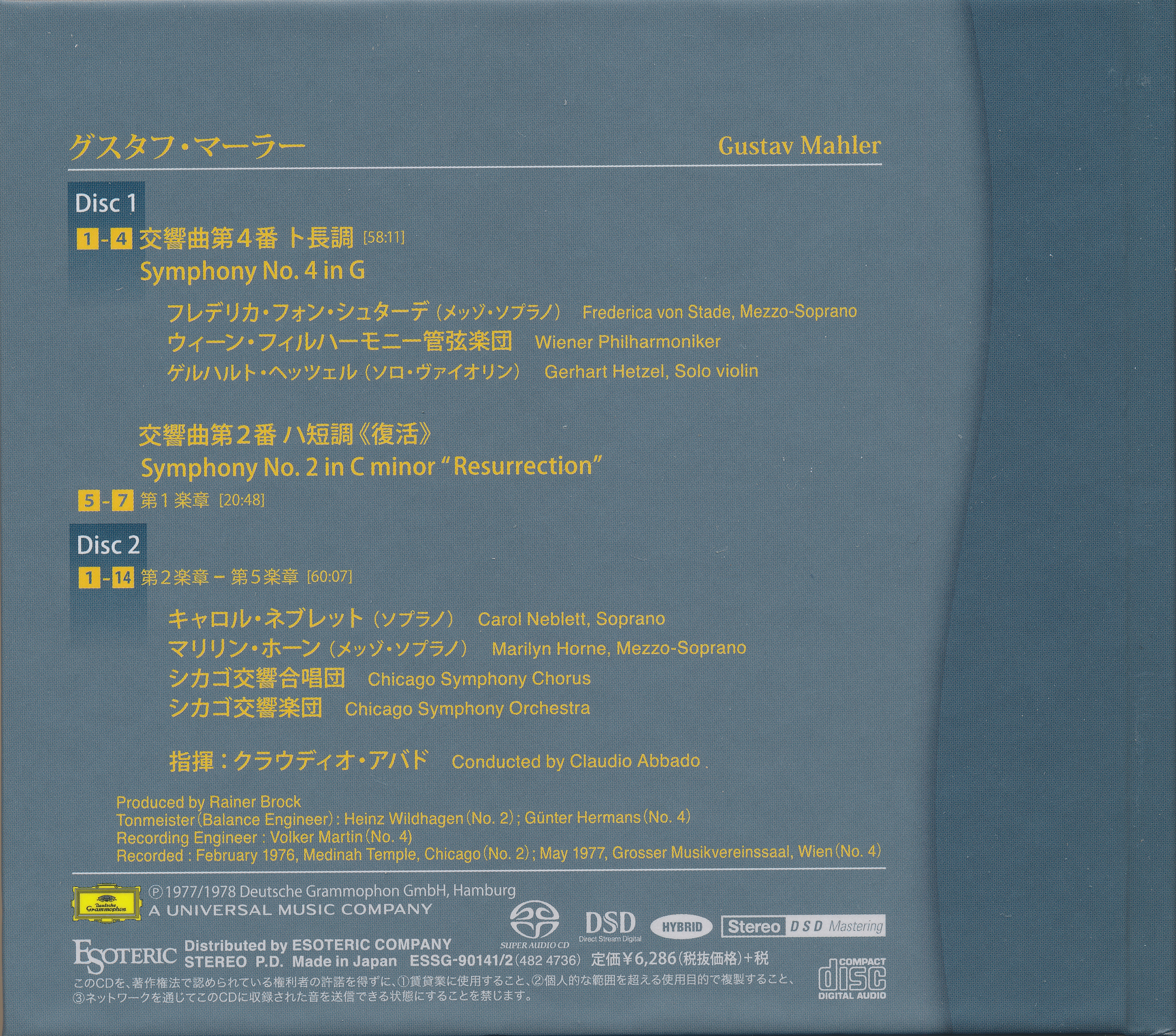Index of /storage/8448F2C348F2B352/SACD(ISO)/Mahler - Symphonies 2 & 4 (Claudio Abbado - Wiener Philharmoniker, CSO - 1976,77)(DG-Esoteric - ESSG-90141-42, 2016 JP)(SACD-ISO 2.0)/Artwork