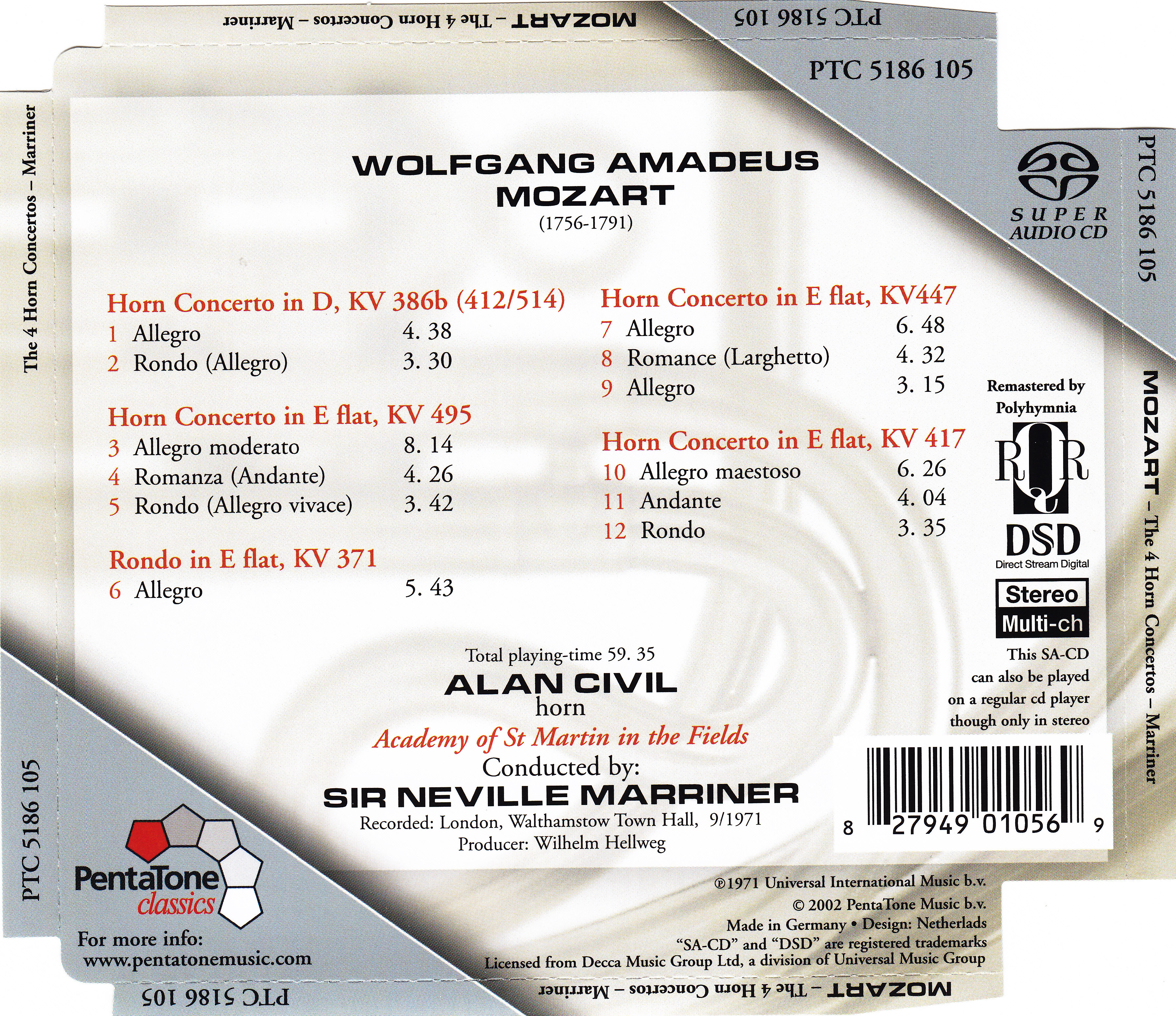 Mozart - 4 Horn Concertos Rondo in E flat - Alan Civil - Sir Neville Marriner - ASMF - Pentatone.md5