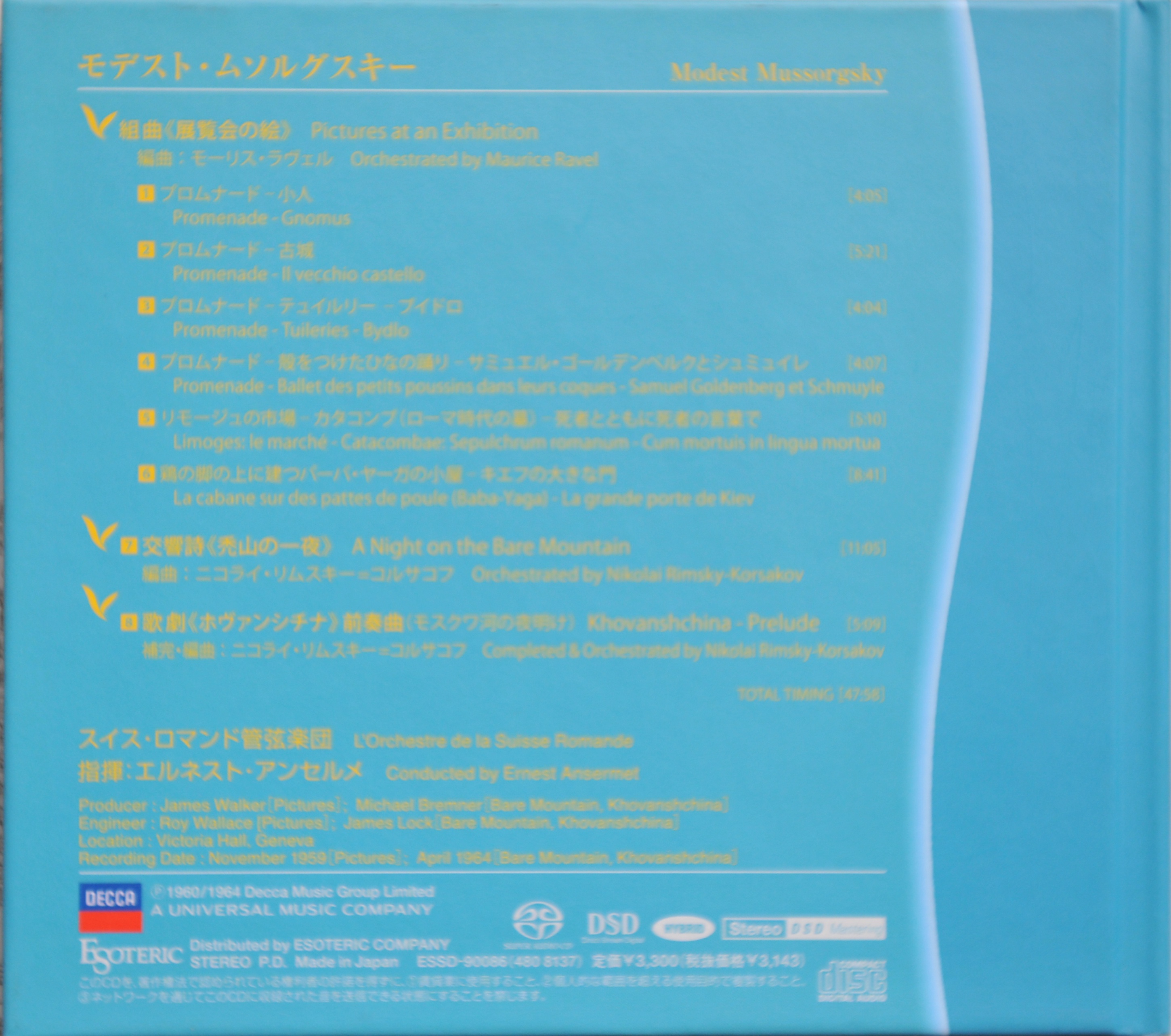 Index of /storage/8448F2C348F2B352/SACD(ISO)/Mussorgsky - Pictures at an exhibition, etc. (Ernest Ansermet, L'Orchestre de la Suisse Romande) (1964 DECCA, Esoteric ESSD-90086)