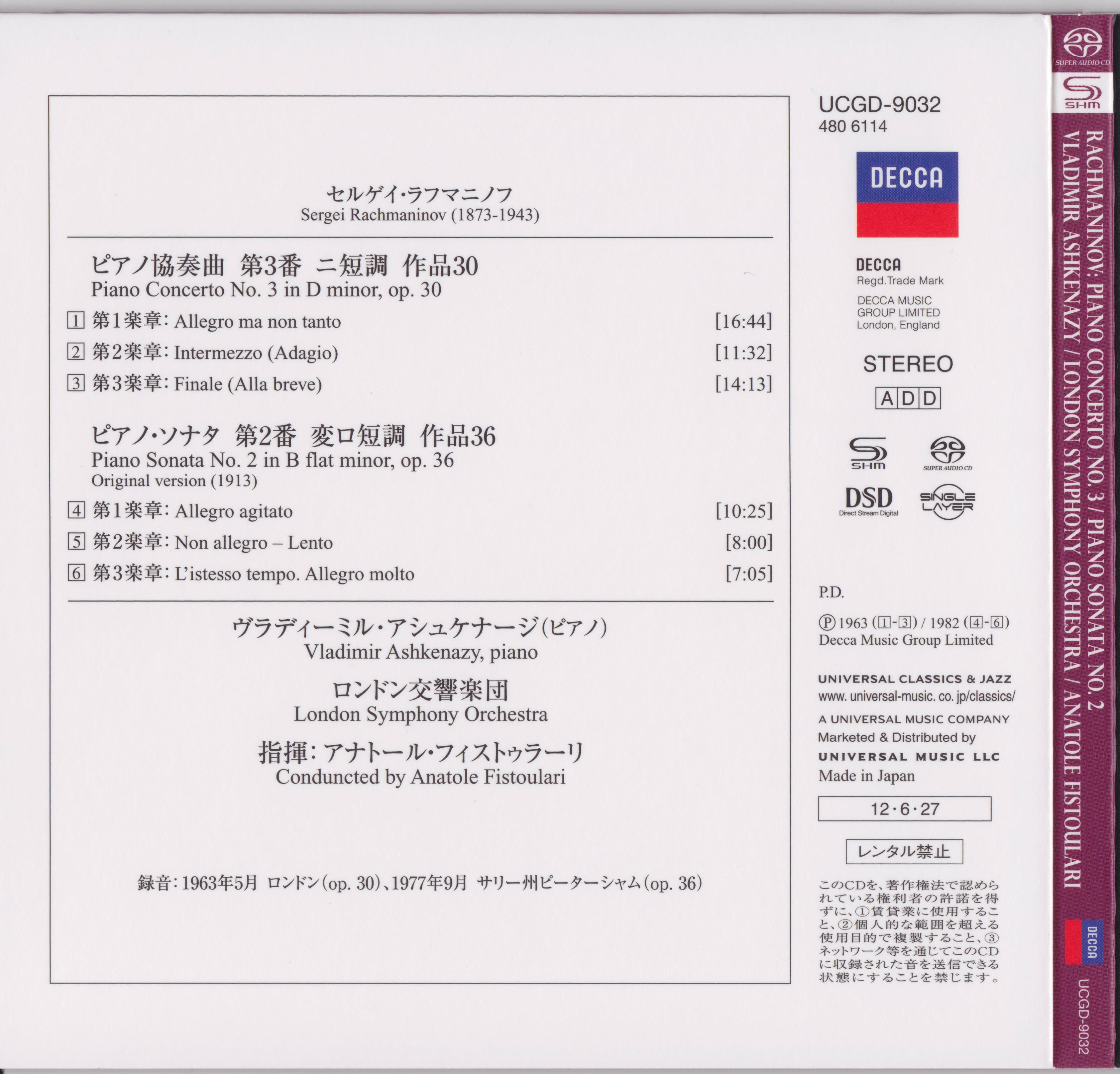Index of /storage/8448F2C348F2B352/SACD(ISO)/Rachmaninov - Piano Concerto No. 3 - Vladimir Ashkenazy - Anatole Fistoulari - LSO -Decca-SHM-SACD