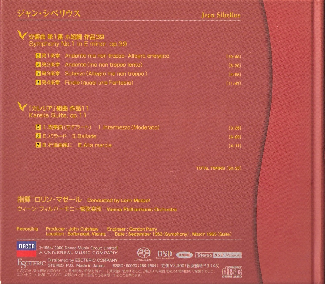 Index of /storage/8448F2C348F2B352/SACD(ISO)/Sibelius - Symphony No.1 in E Minor, Op.39 (Lorin Maazel, Vienna Philharmonic Orchestra) [ISO] (1964, 2009 Esoteric ESSE-90020)/Artwork