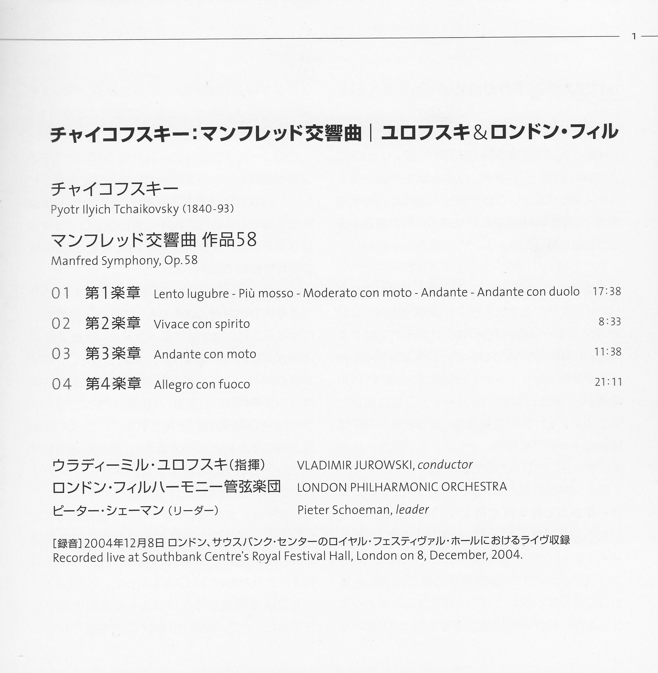 VLADIMIR JUROWSKI, LONDON PHILHARMONIC ORCHESTRA - JUROWSKI conducts TCHAIKOVSKY MANFRED SYMPHONY.iso